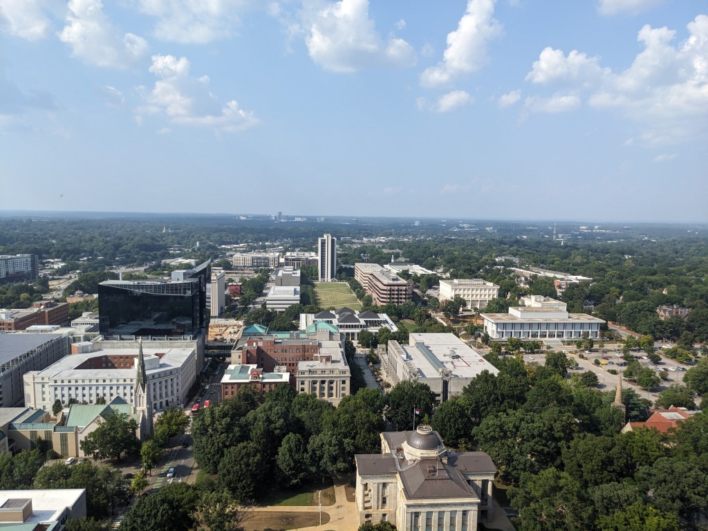 Yesterday I posted about a ‘convention’ I was heading to, only now I know it wasn’t really a convention I signed up for. It was more of a talk? A social gathering? I’m not sure. It was in a conference room atop one of the tallest buildings in Raleigh. The view made me a little sick standing too close. I even got a picture.