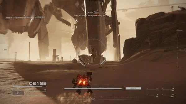 It’s hard to get a sense of scale here, which I think hints at the root of the subtle horror at hand. How much bigger could it possibly get? Well, they get so big you start to forget you’re even driving a huge mech in the first place. Here’s the Strider from another angle where the player is moving past one of the feet.