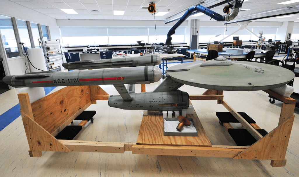 Since these first steps into the universe we’ve been thinking about bigger and better ways to do it, some of us for our entire lives. Gene Roddenberry put perhaps the most famous spacecraft of all time on screen back in 1964, imagining a future of faster than light travel before we’d even visited the nearest celestial body. The original Enterprise was an 11 foot model that looks awfully hard to move around for filming to me. Nonetheless, it’s very cool.